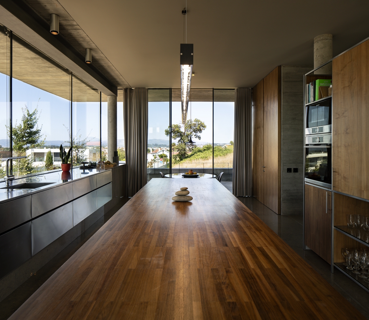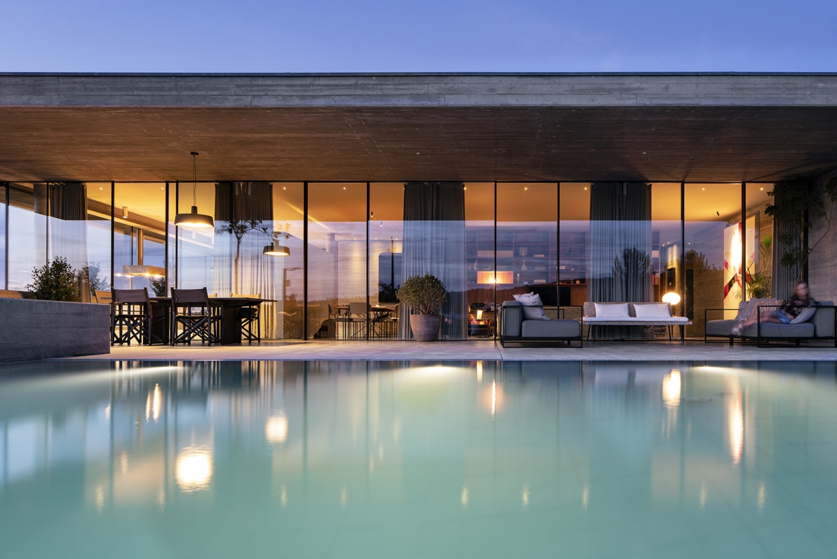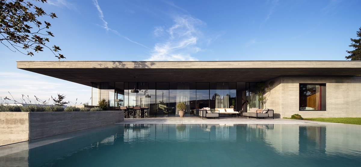 Portugal Casa Parada de Tibães Informações Gabinete projetista AZO Arquitectos Fotografia Nelson Garrido Localização Portugal Sistemas aplicados N25500 Sistema minimalista de caixilharia de correr, com vista em alçado de apenas 21 mm para o montante central, que permite, através da utilização de vidro estrutural, a execução de vãos de grande dimensão, nas versões mono-rail, bi-rail e tri-rail.