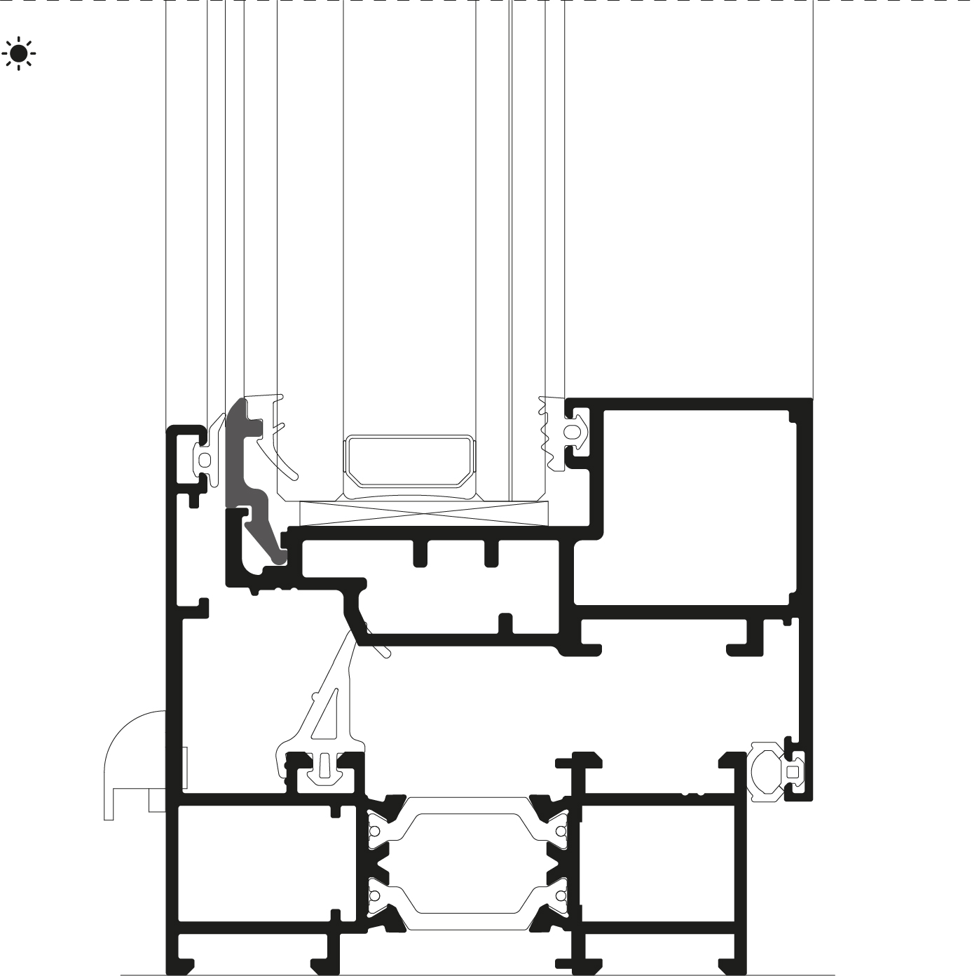 A Folha Oculta Light N14 200 é uma série de batente com rutura de ponte térmica, produzida com perfis termicamente melhorados de três câmaras, utiliza barras de