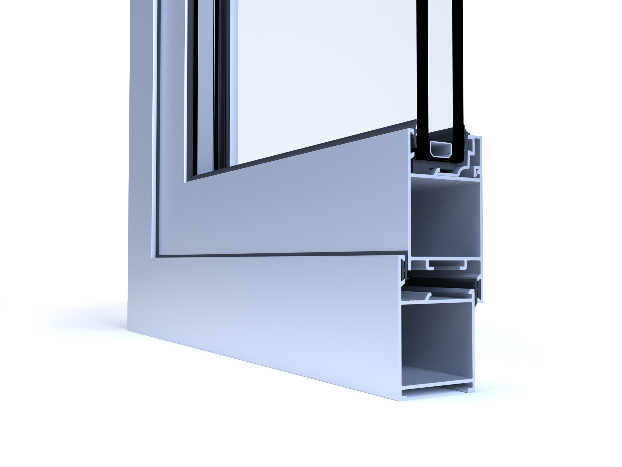 Com profundidade de aro de 40 mm, permite a construção de uma grande variedade de vãos de forma económica, podendo utilizar-se vidro simples ou duplo.