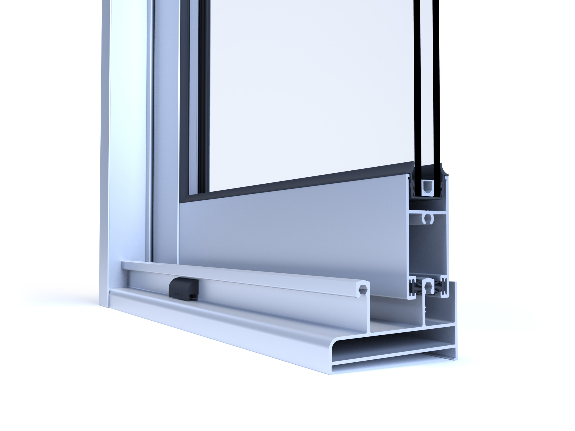 Oferecendo todas as soluções possíveis neste tipo de caixilharia, permite ligação ao sistema de caixilharia de batente.