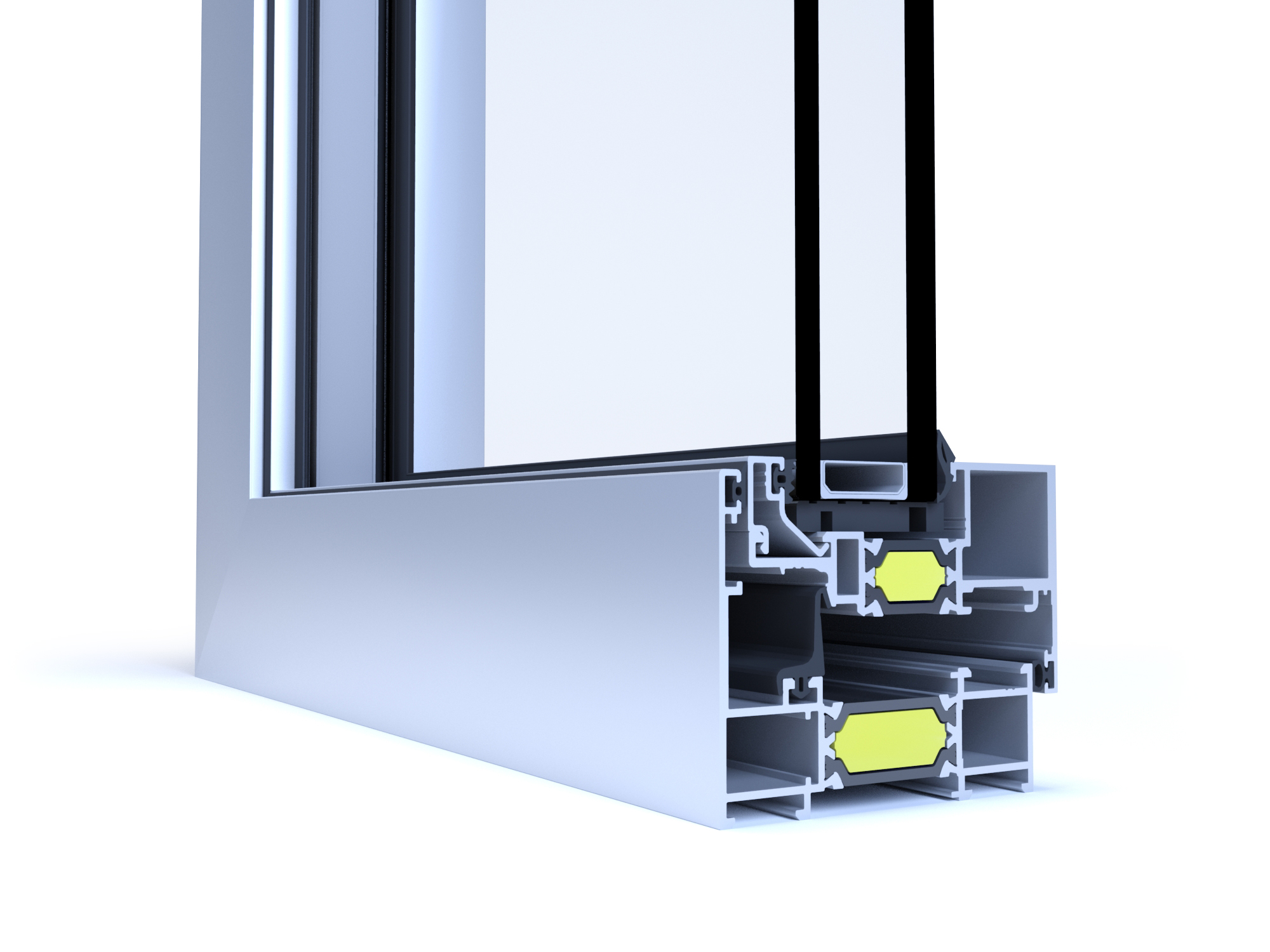 The concealed frame system, available in the N14 200 and N14 300 variants, has a sash depth of 70mm and 80mm, respectively. Manufactured with thermally improved three-chamber profiles, it uses 24mm and 34mm polyamide bars reinforced with fibreglass. With a 66.5mm wide sash, this system features the concealed frame, which allows maintaining the same view in both fixed and moveable sections.