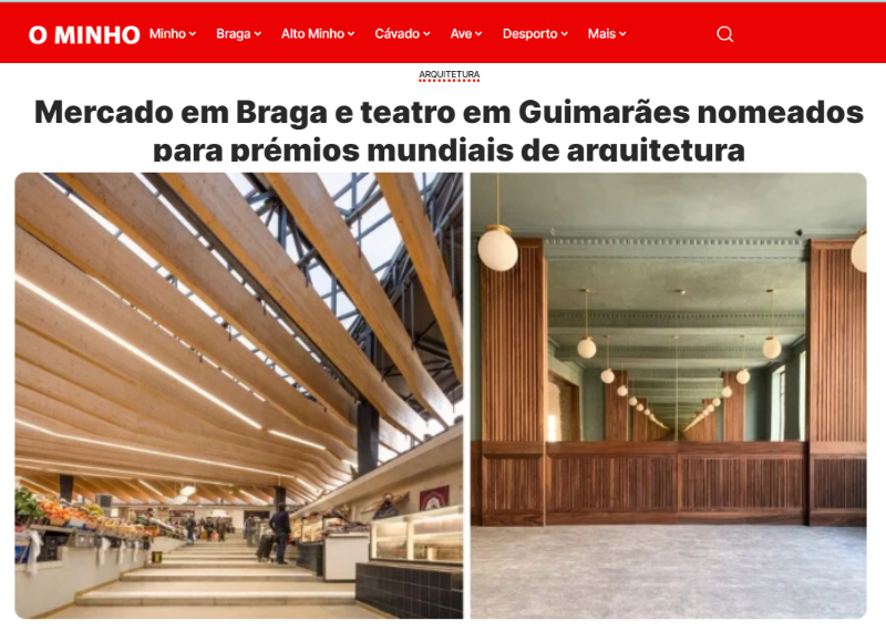 Sexta, 02 Fevereiro 2024O Mercado Municipal de Braga e o Teatro Jordão, em Guimarães, estão nomeados nos prémios “Building Of The Year 2024”, organizado pelo prestigiado portal de arquitetura ArchDaily.